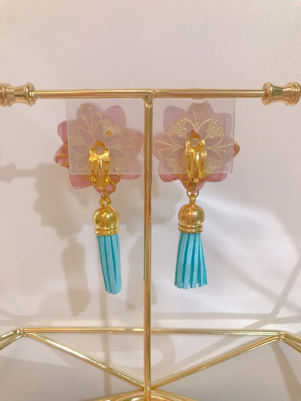 Lotus earring ロータスタッセルイヤリング (ライトピンク×ライトブルー)