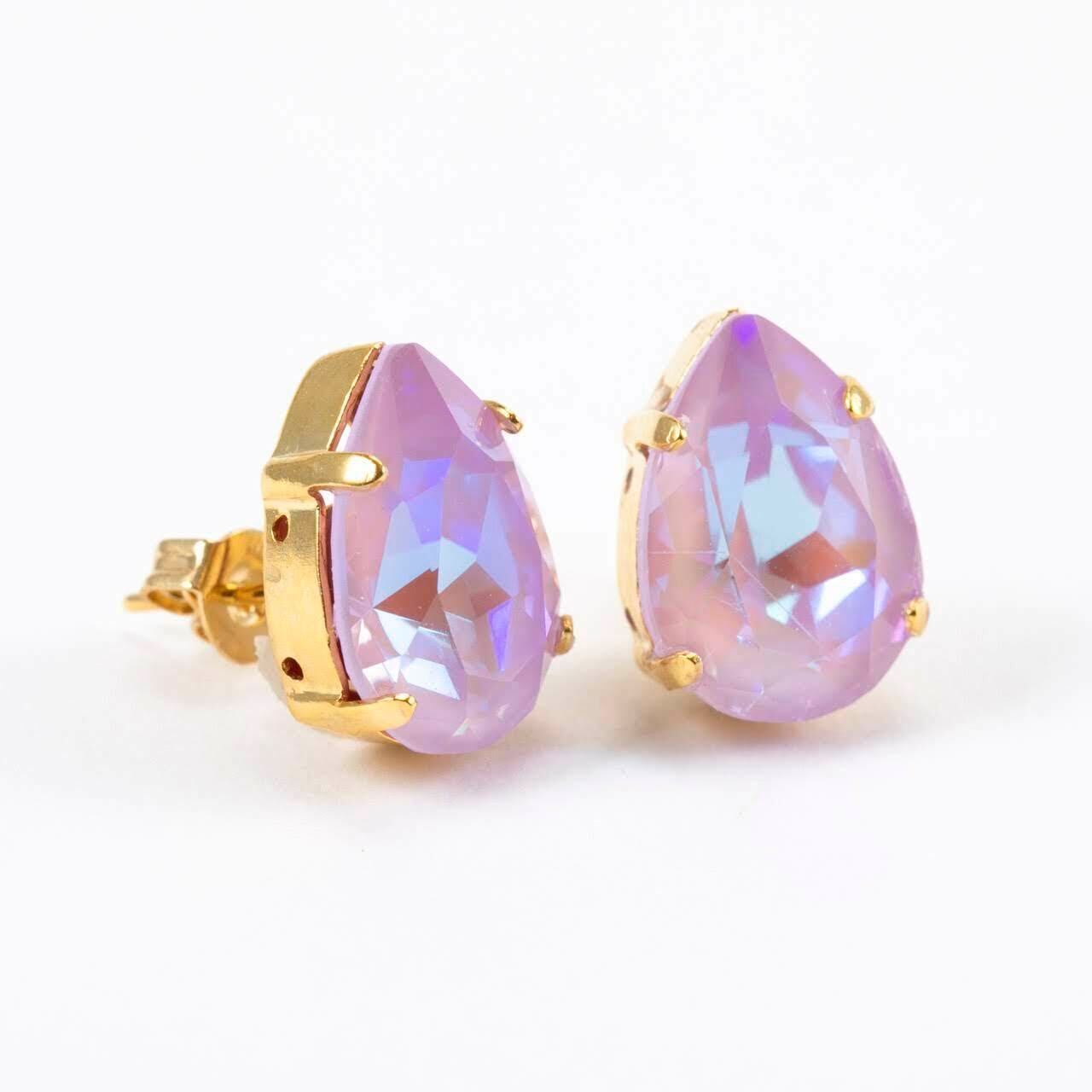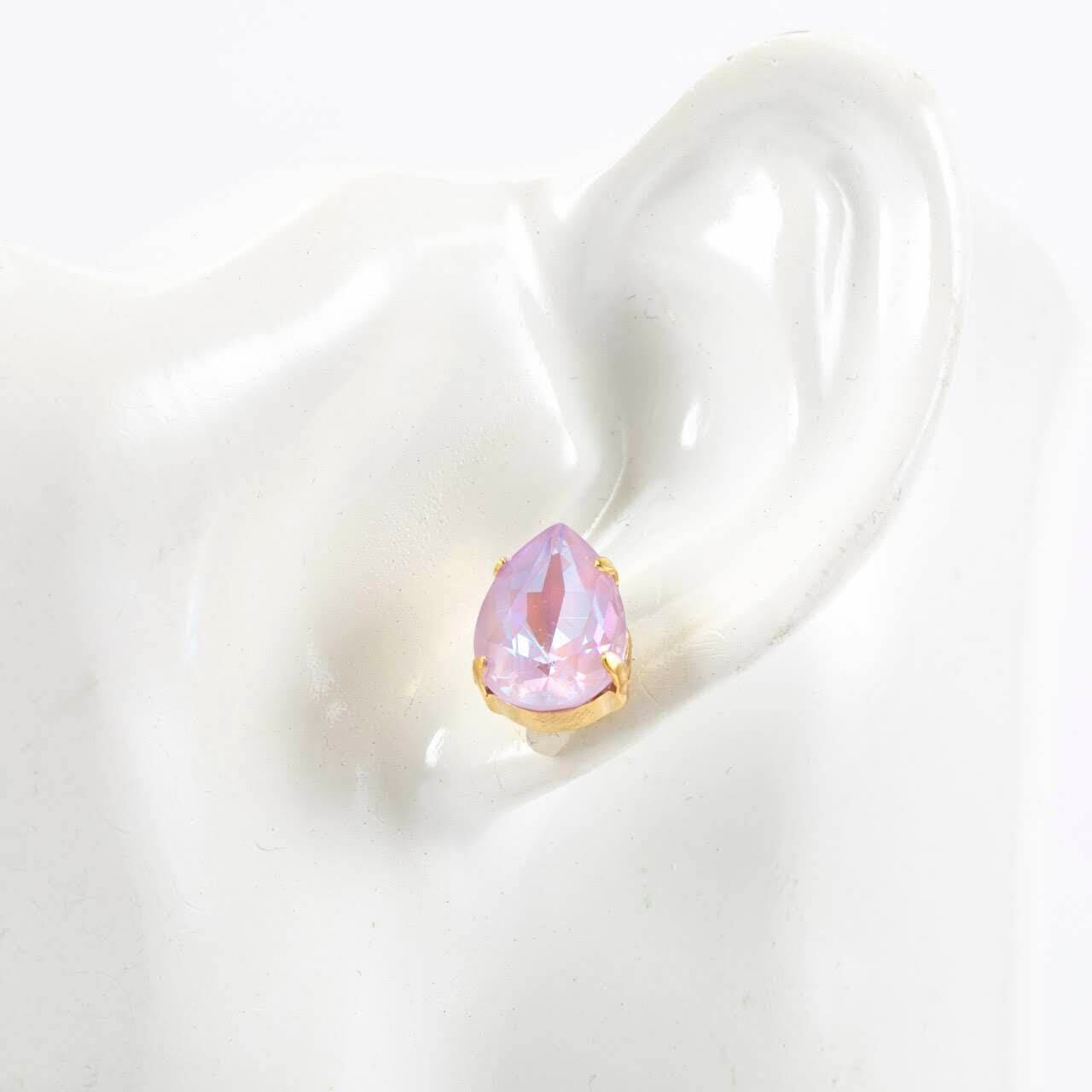 耳元に光るラベンダー色のスワロフスキー ピアスです。