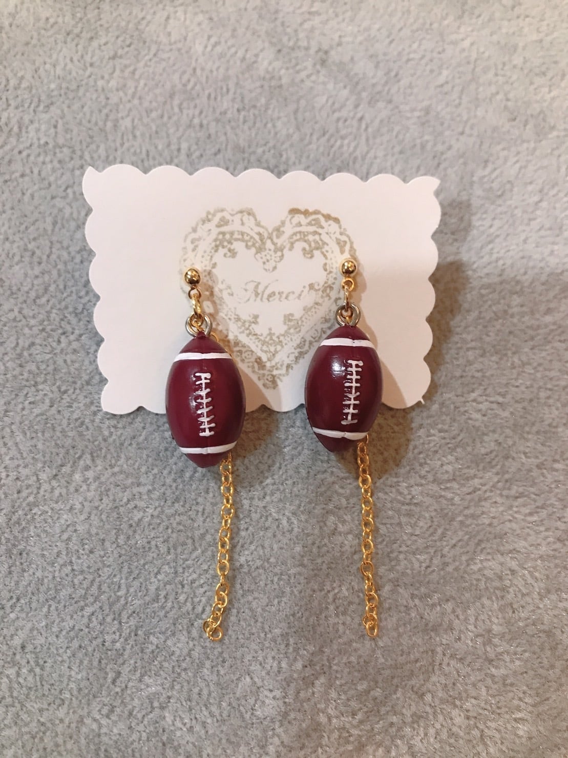 アメリカンフットボールがモチーフのピアスです。