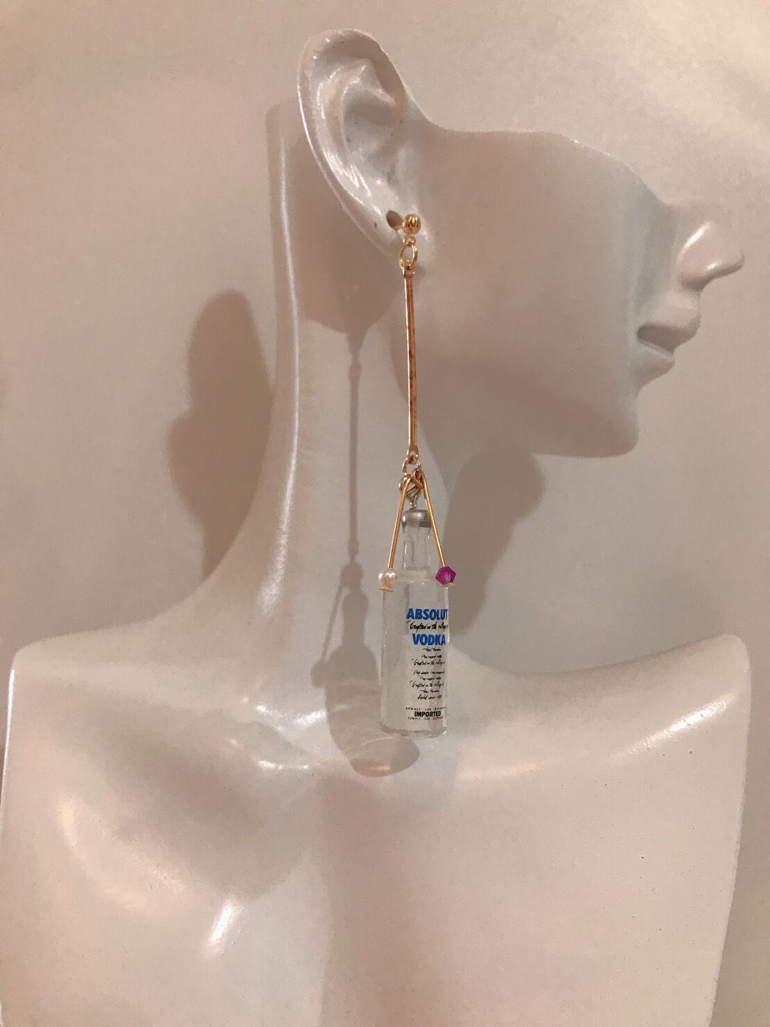 ウォッカボトルをモチーフにした遊び心のあるピアスです。