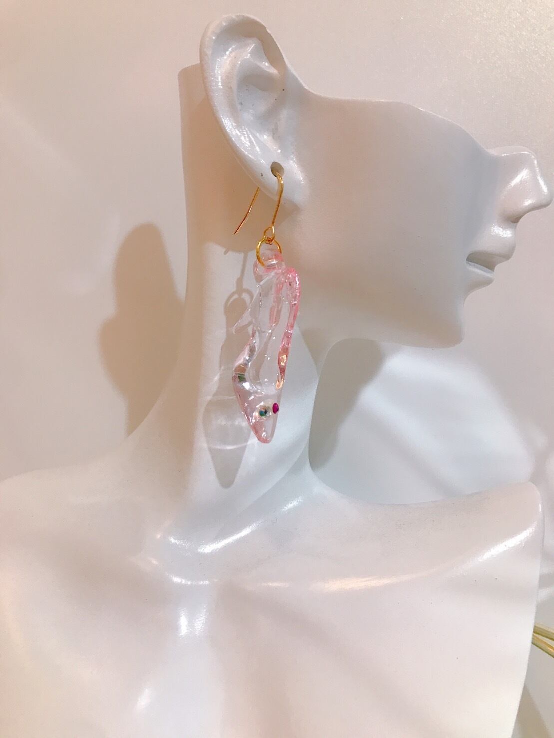 ピンククリアのシンデレラの靴デザインのピアスです。