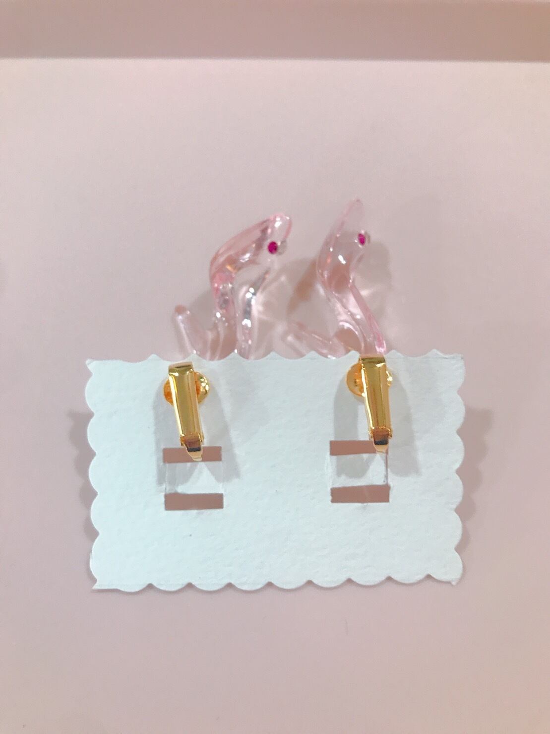 ピンククリアのシンデレラの靴デザインのイヤリングです。