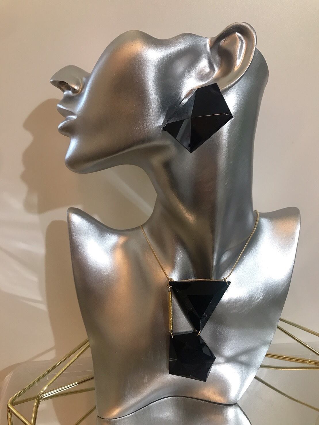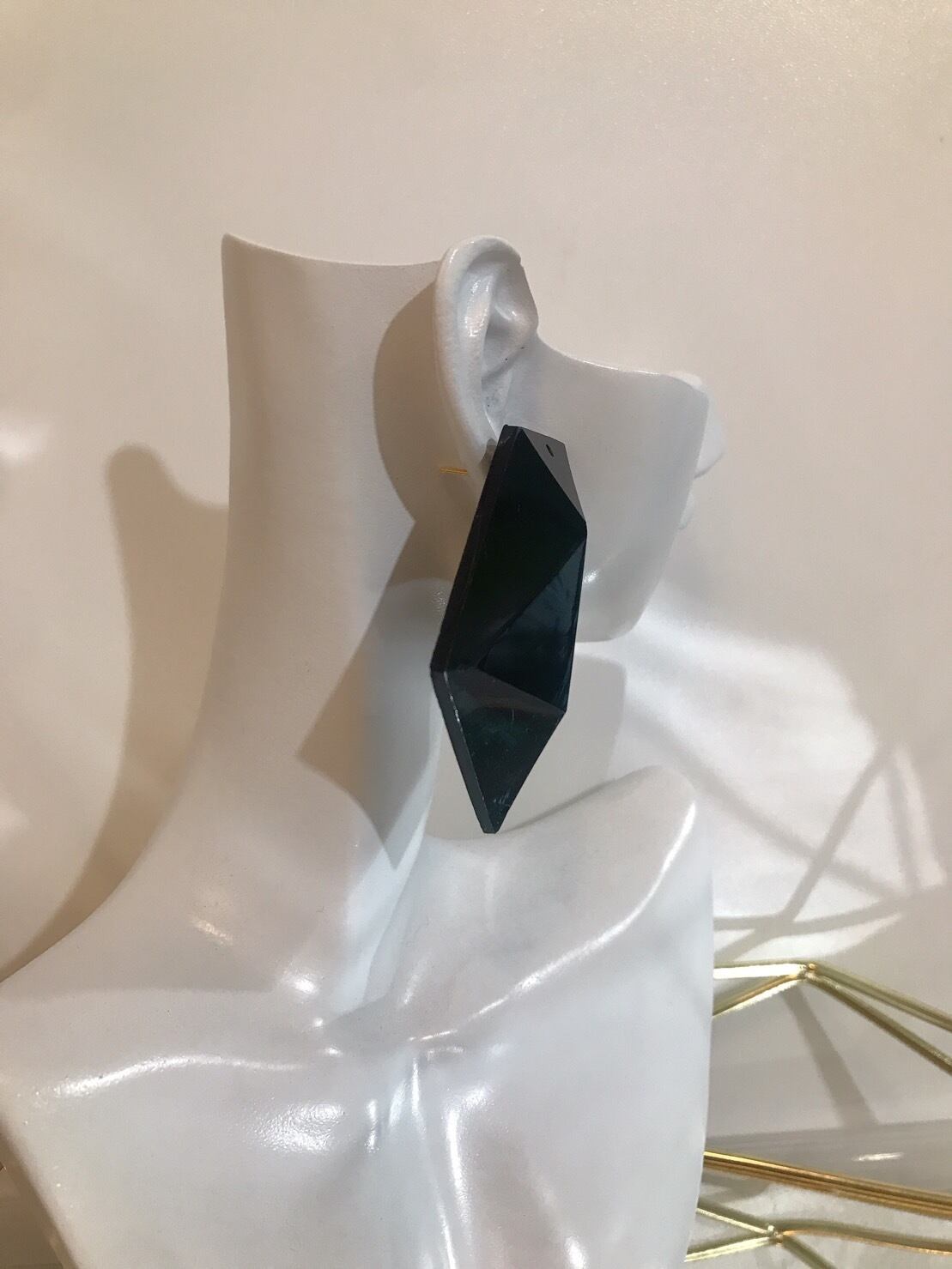 クールでエッジの効いたデザインのブラックダイヤカットピアスです。