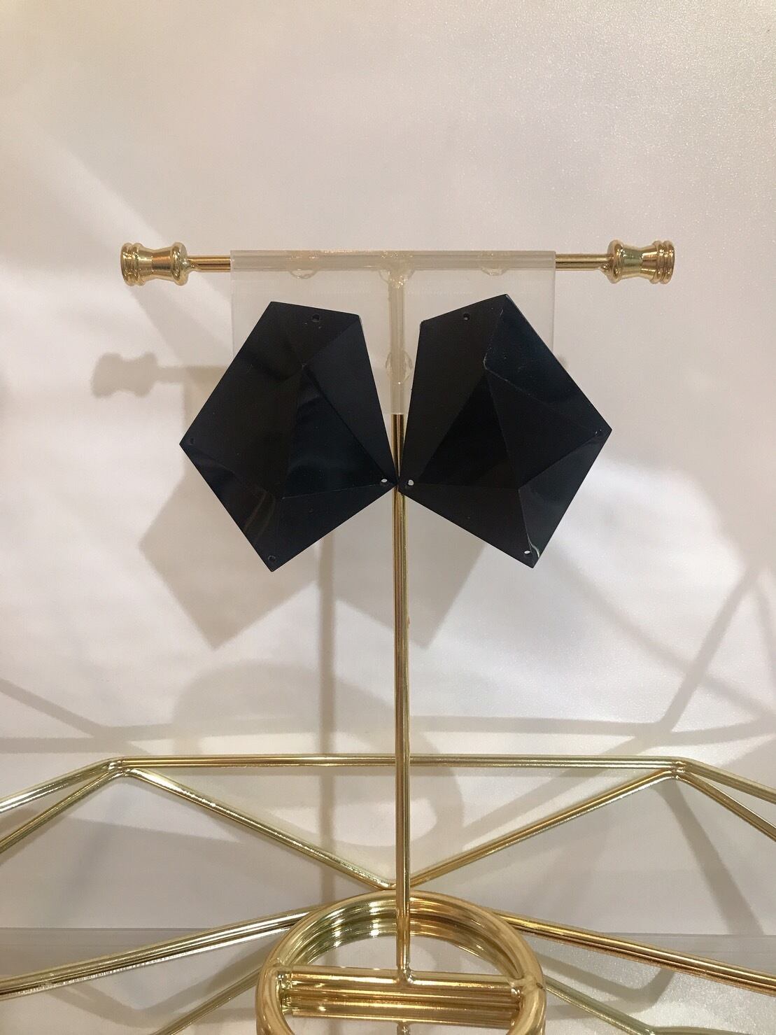 クールでエッジの効いたデザインのブラックダイヤカットイヤリングです。