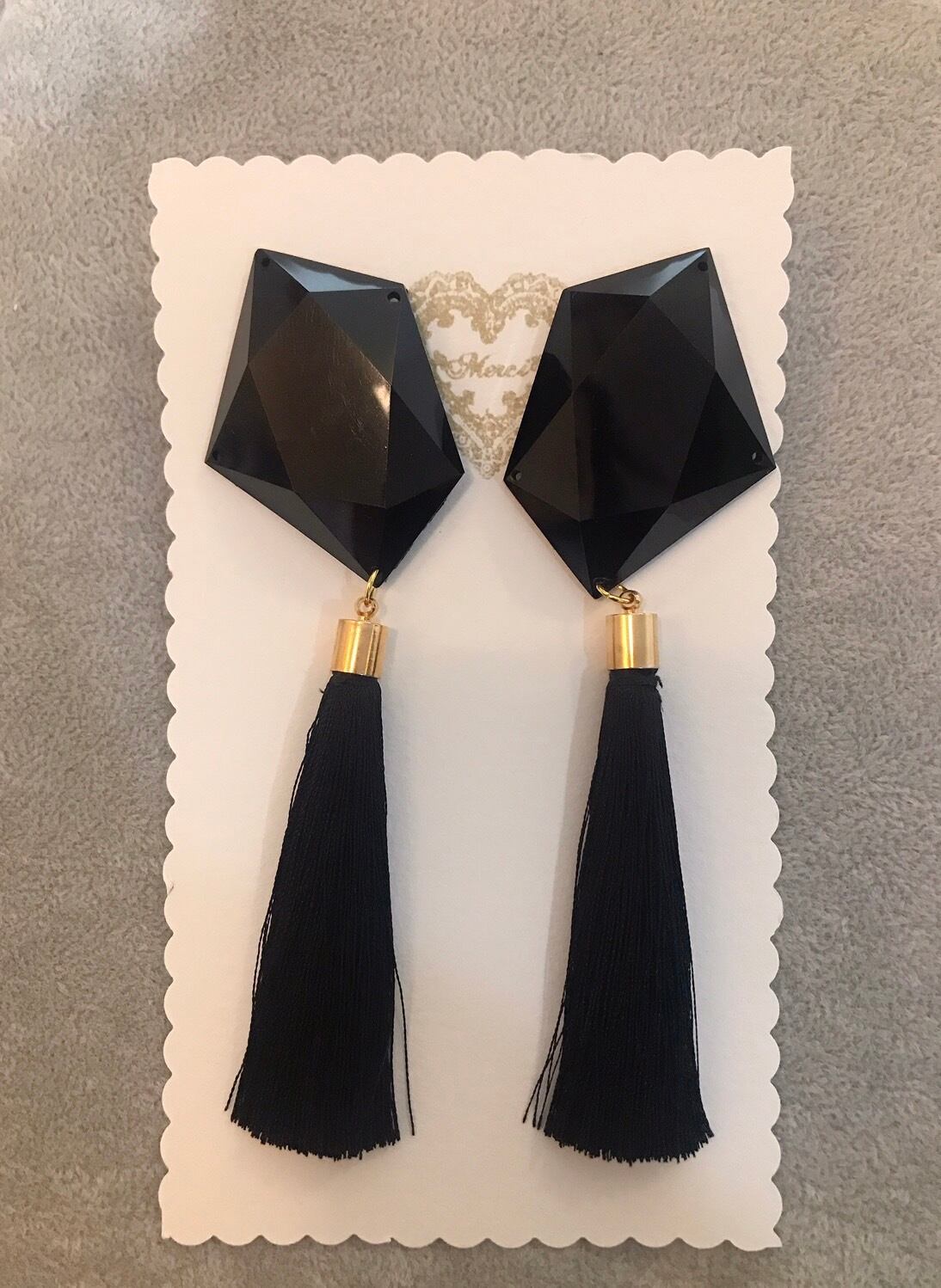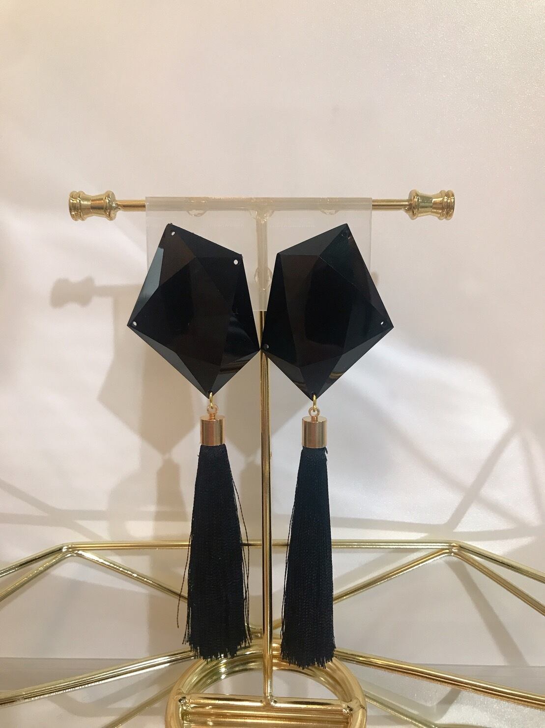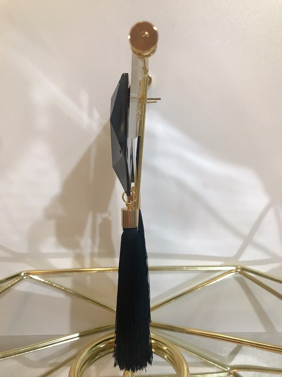 クールでエッジの効いたデザインのブラックダイヤカットタッセルピアスです。