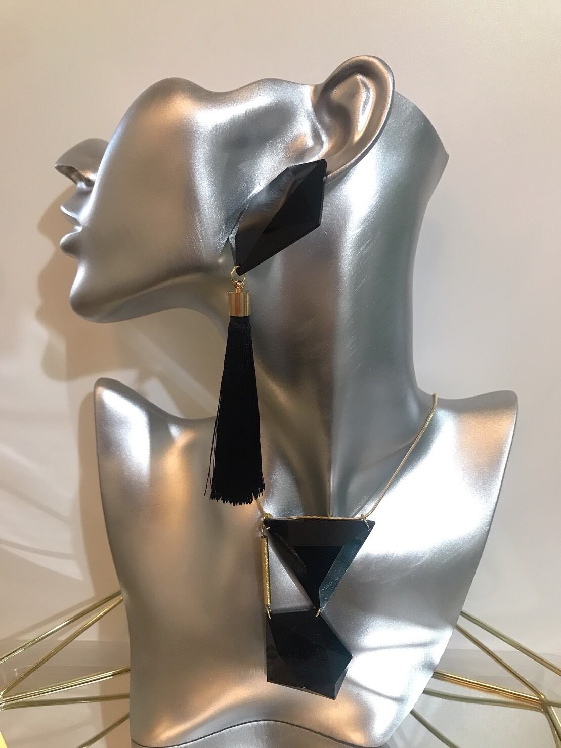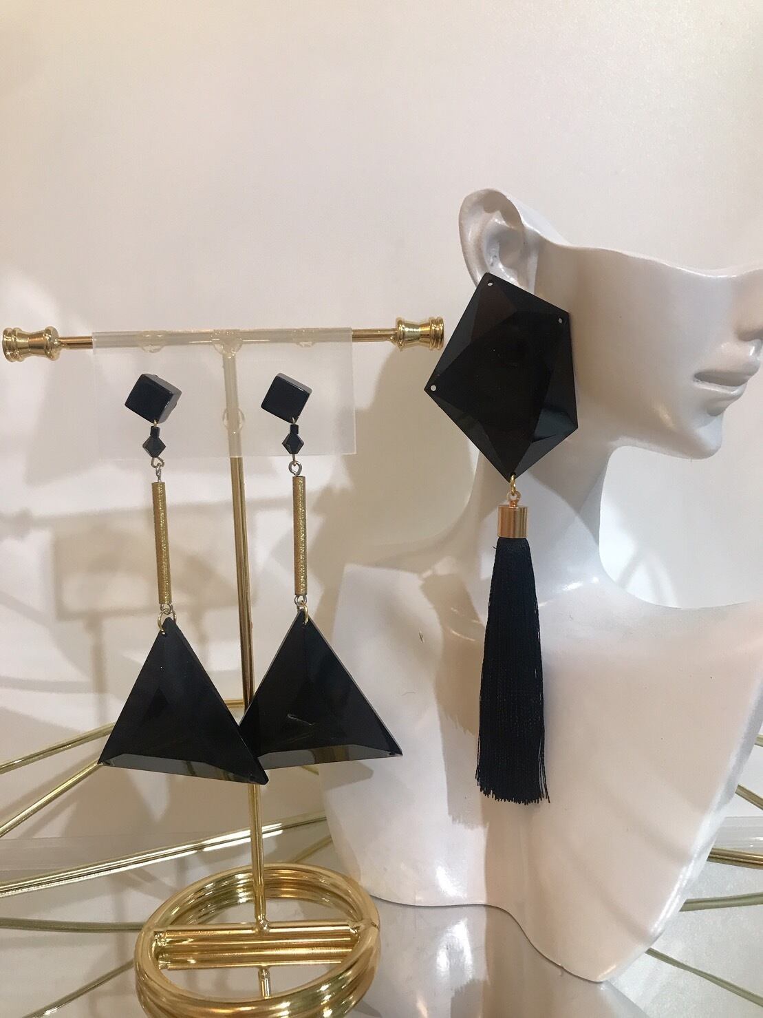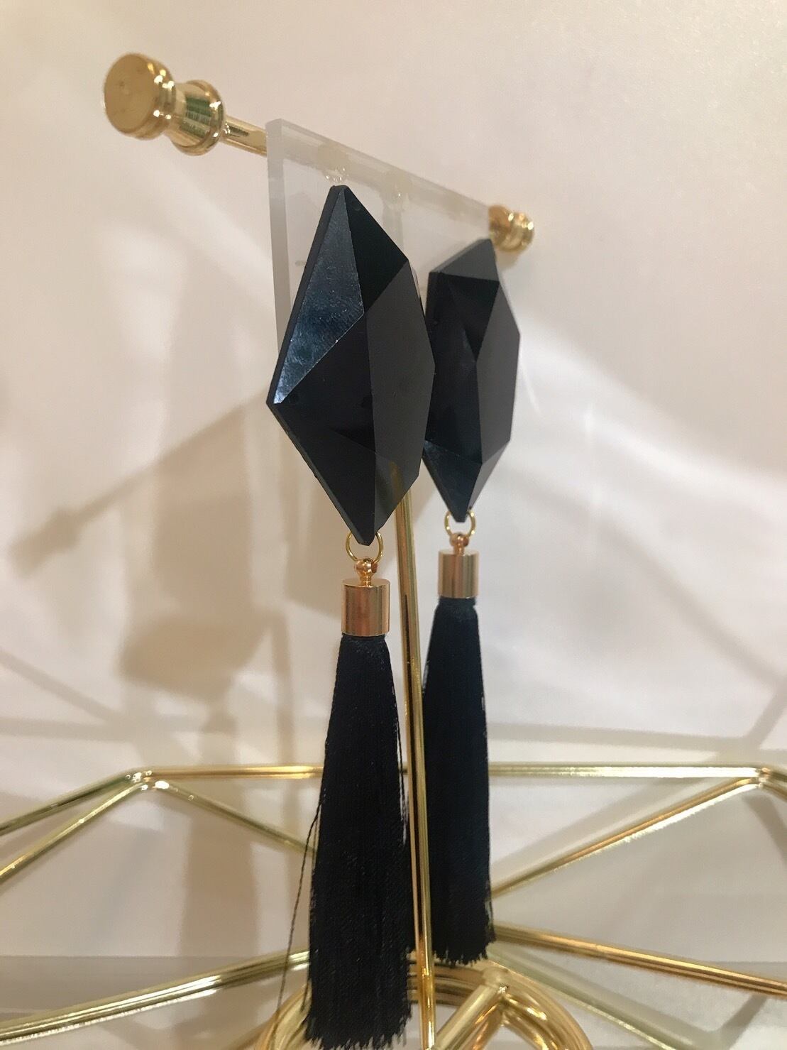 クールでエッジの効いたデザインのブラックダイヤカットタッセルイヤリングです。