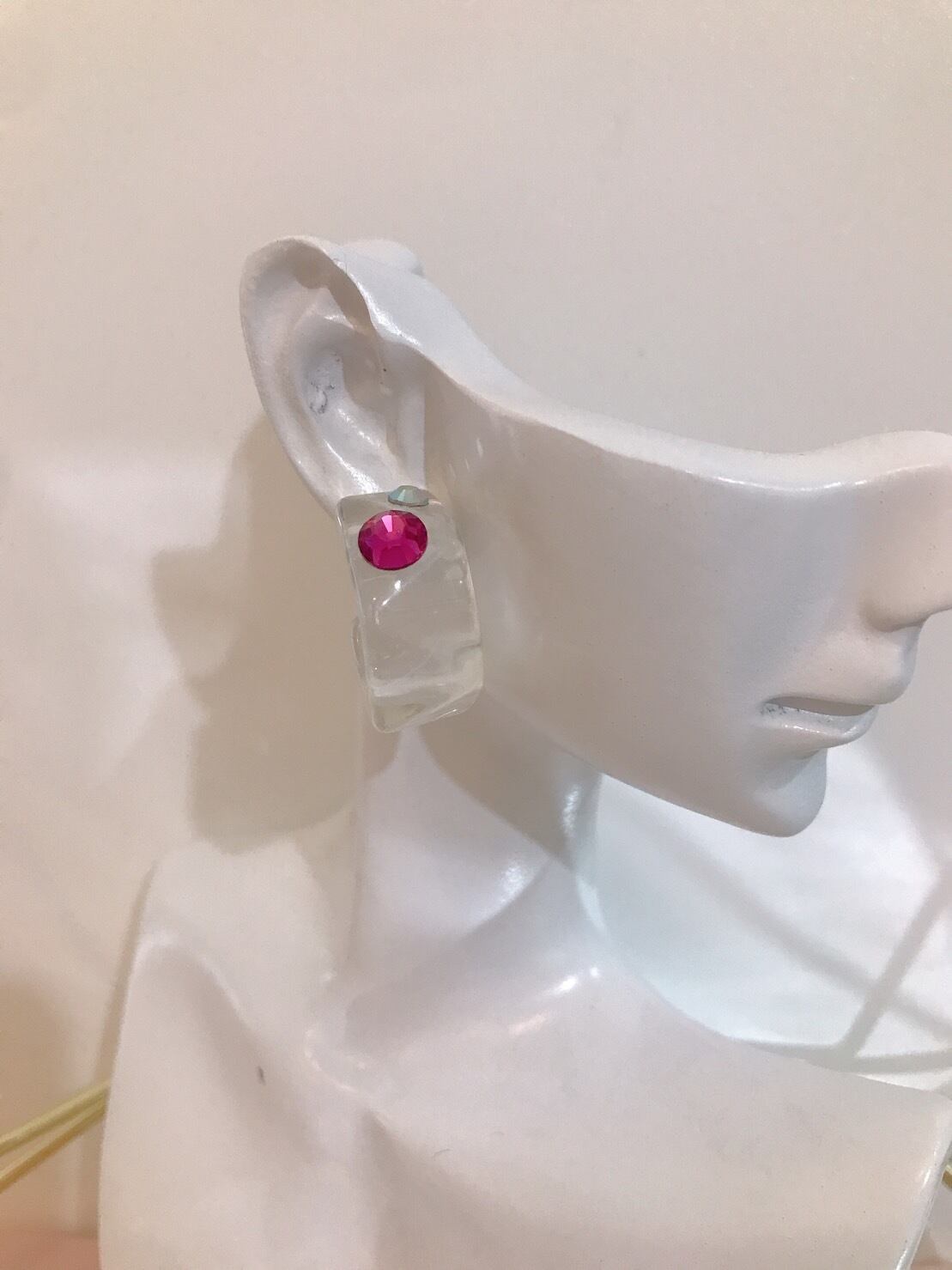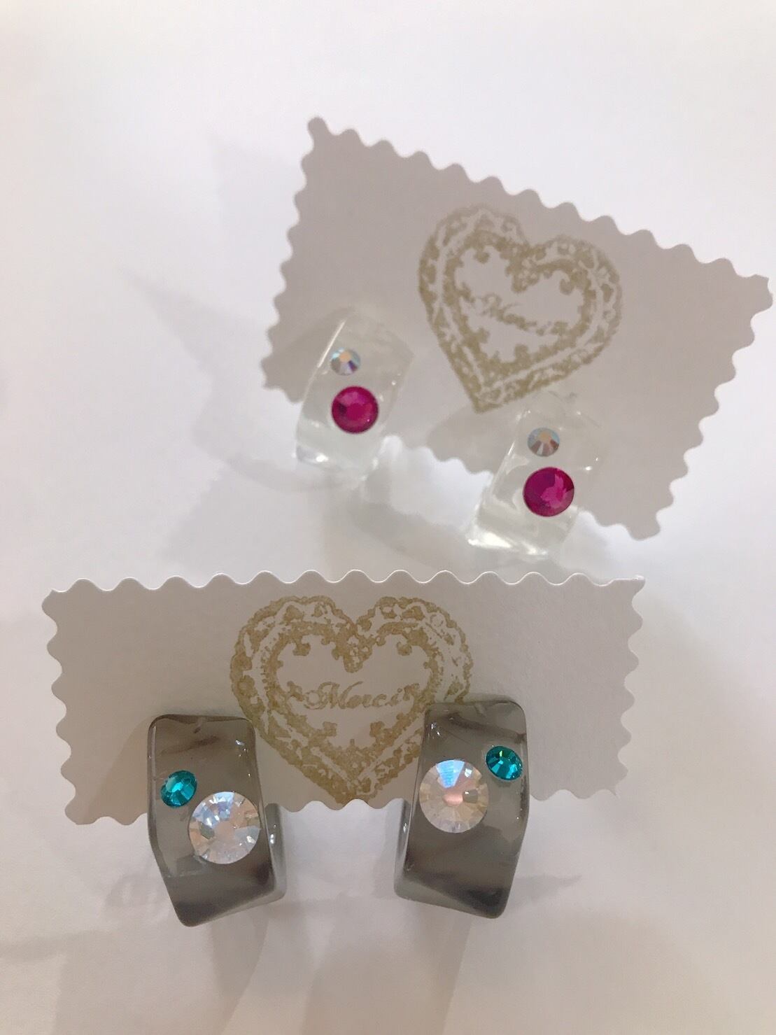 ラインストーンの輝きが印象的な遊び心のある大人のピアスになっています。
