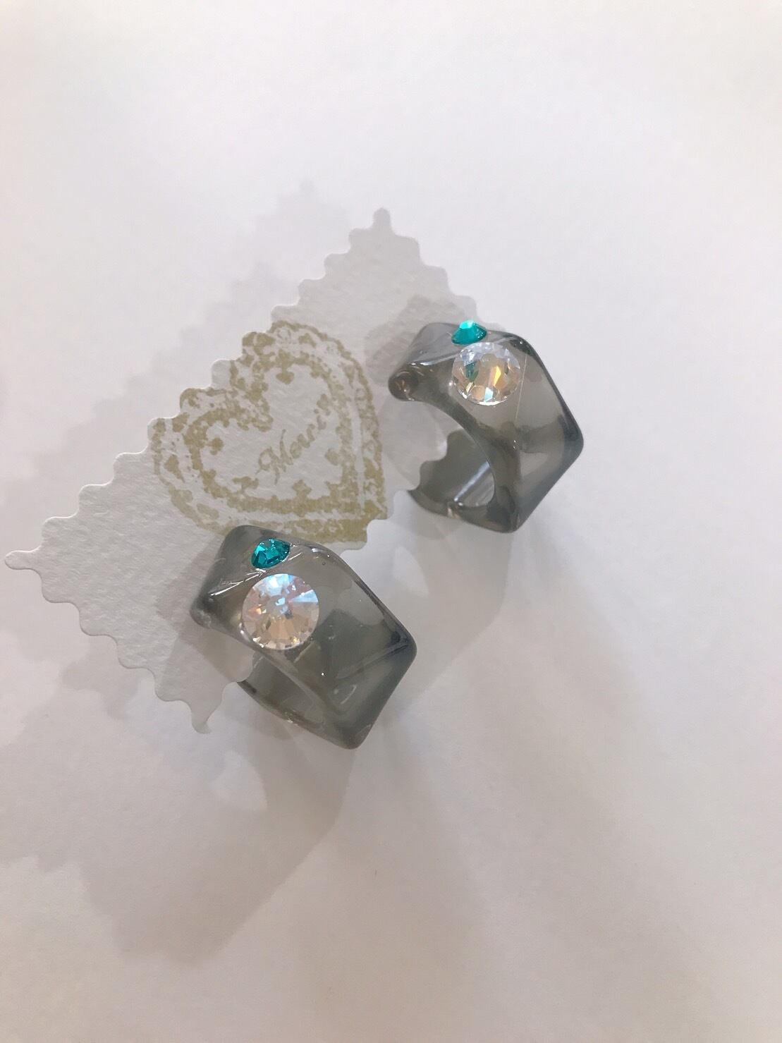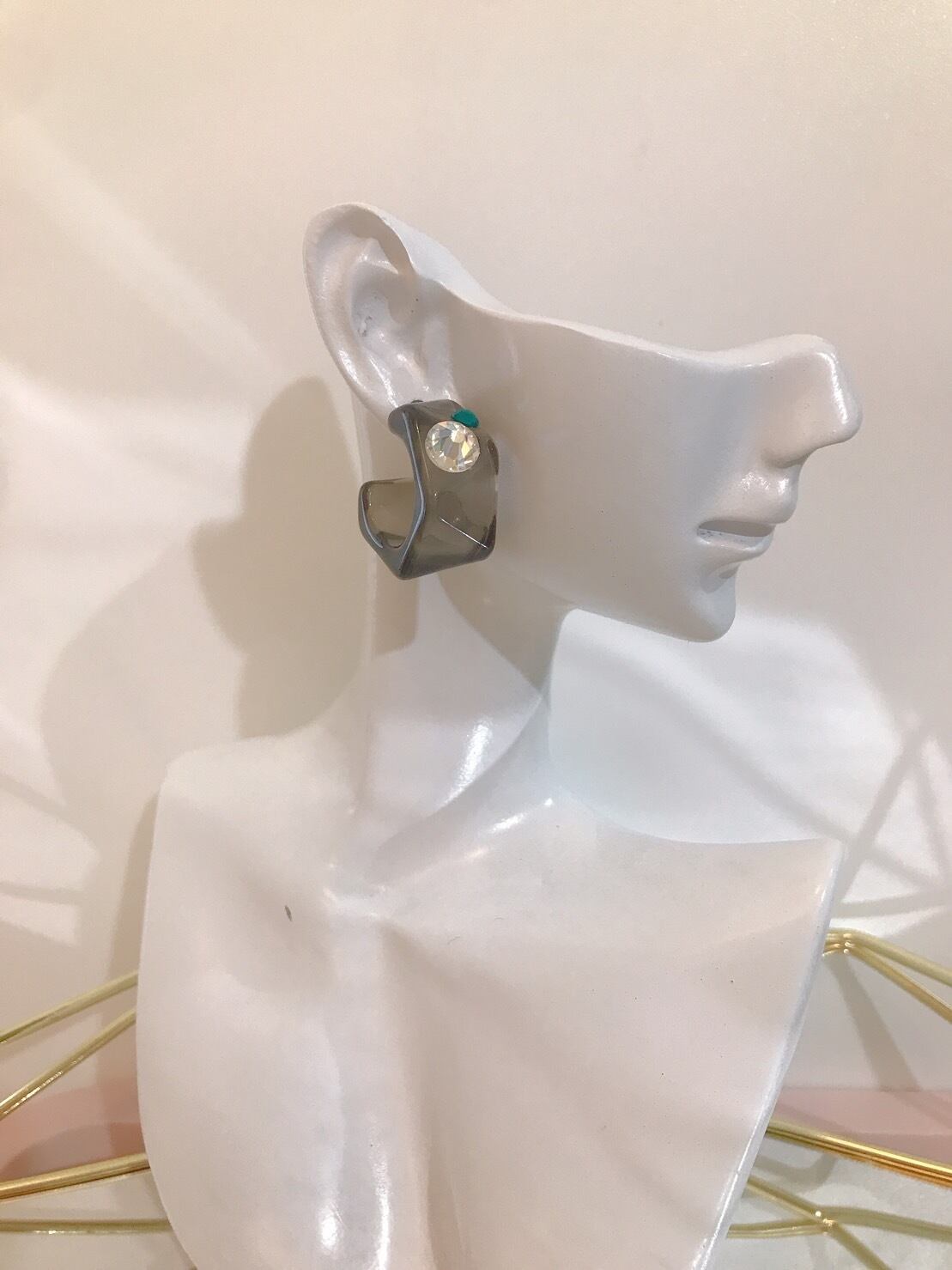 ラインストーンの輝きが印象的な遊び心のある大人のピアスになっています。