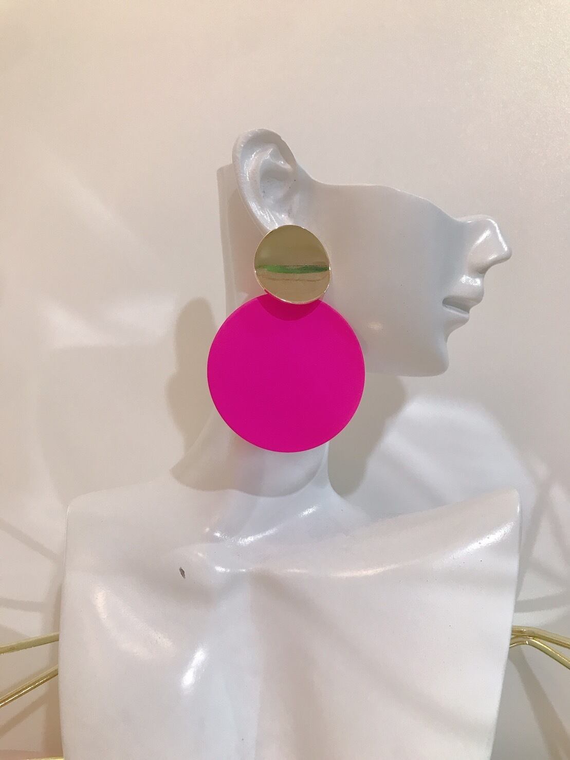 あざやかなビビットピンク色が印象的なデザインピアス。