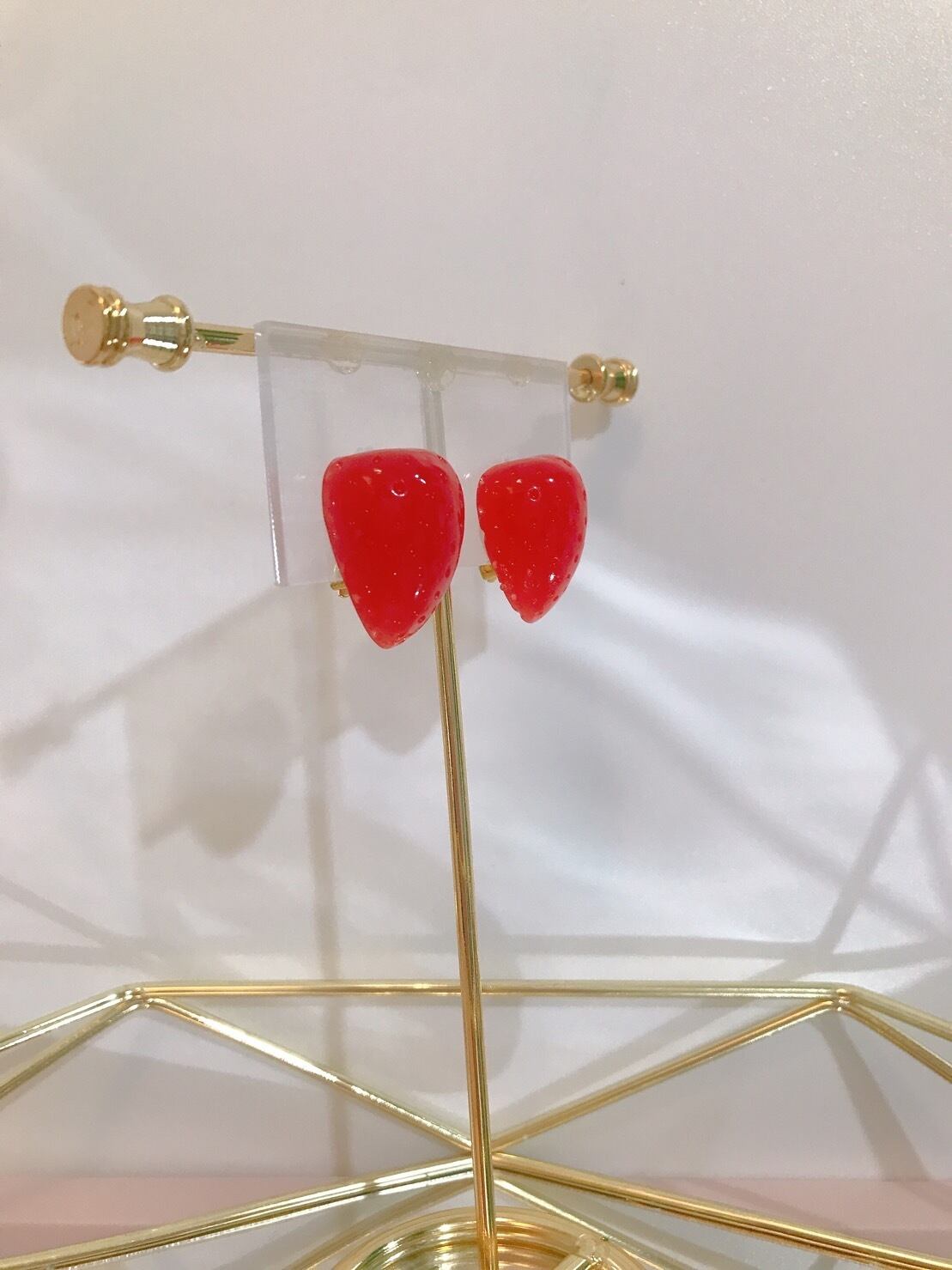 ストロベリーデザインの遊び心のあるイヤリングです。