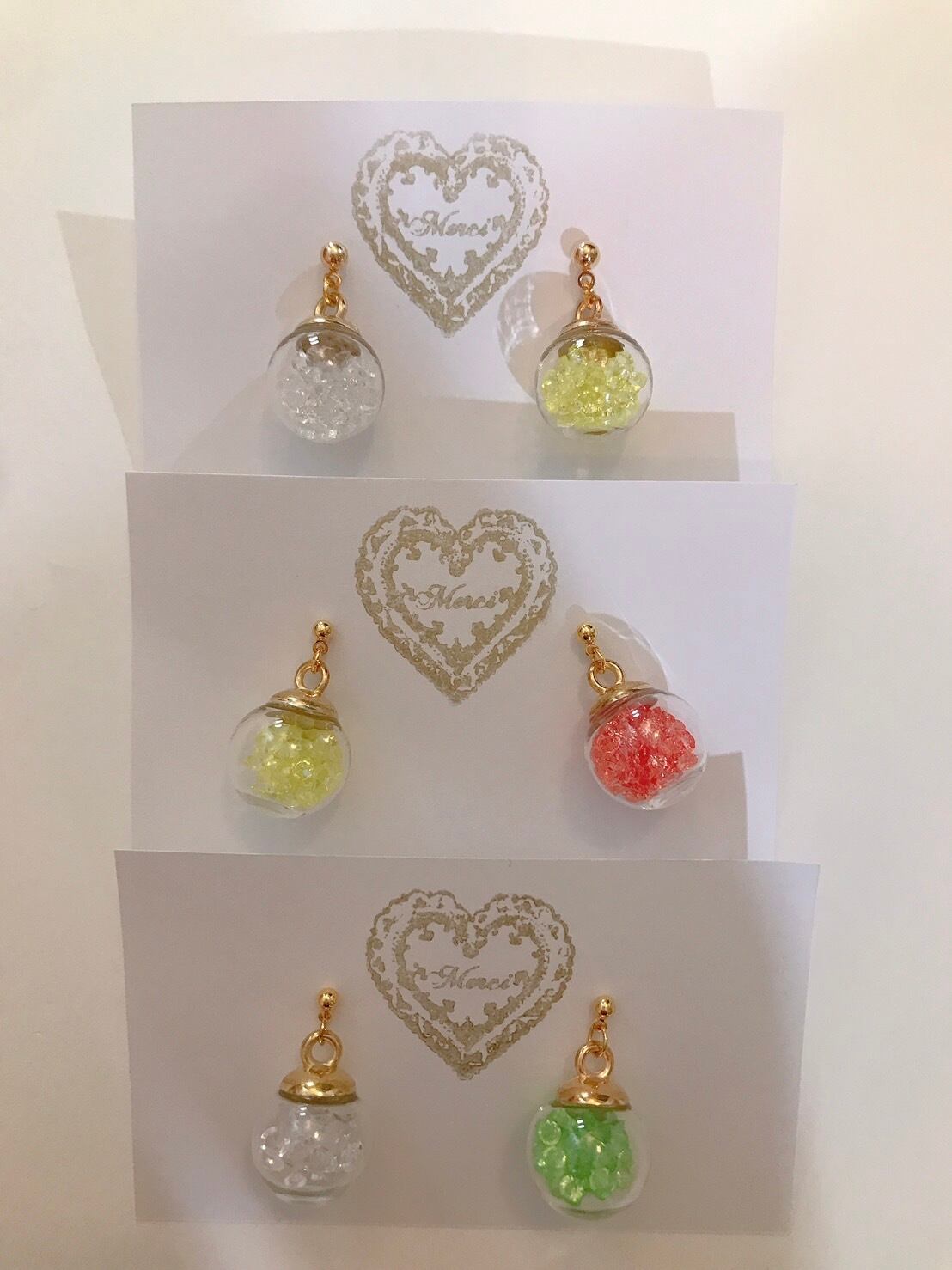 キラキラしたビーズがまるでスノードームのような幻想的な雰囲気のピアスです。