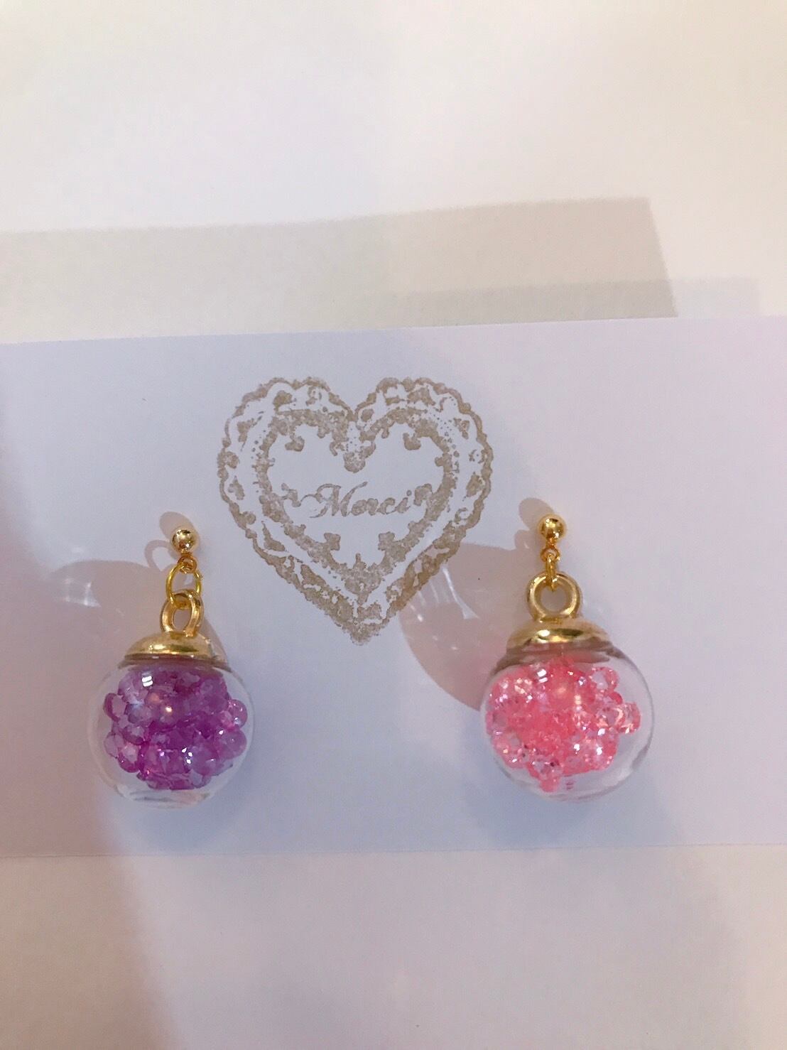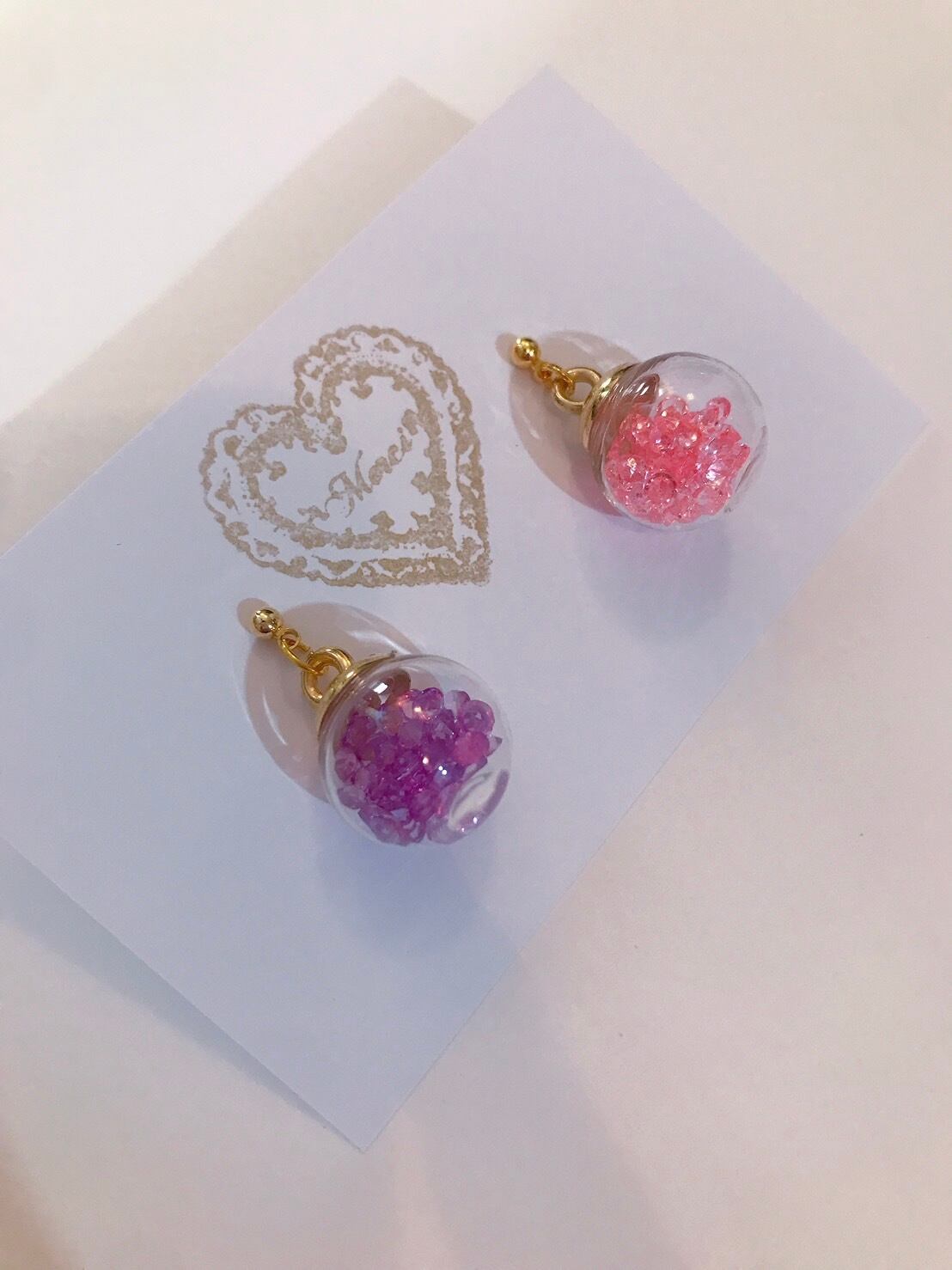 キラキラしたビーズがまるでスノードームのような幻想的な雰囲気のピアスです。
