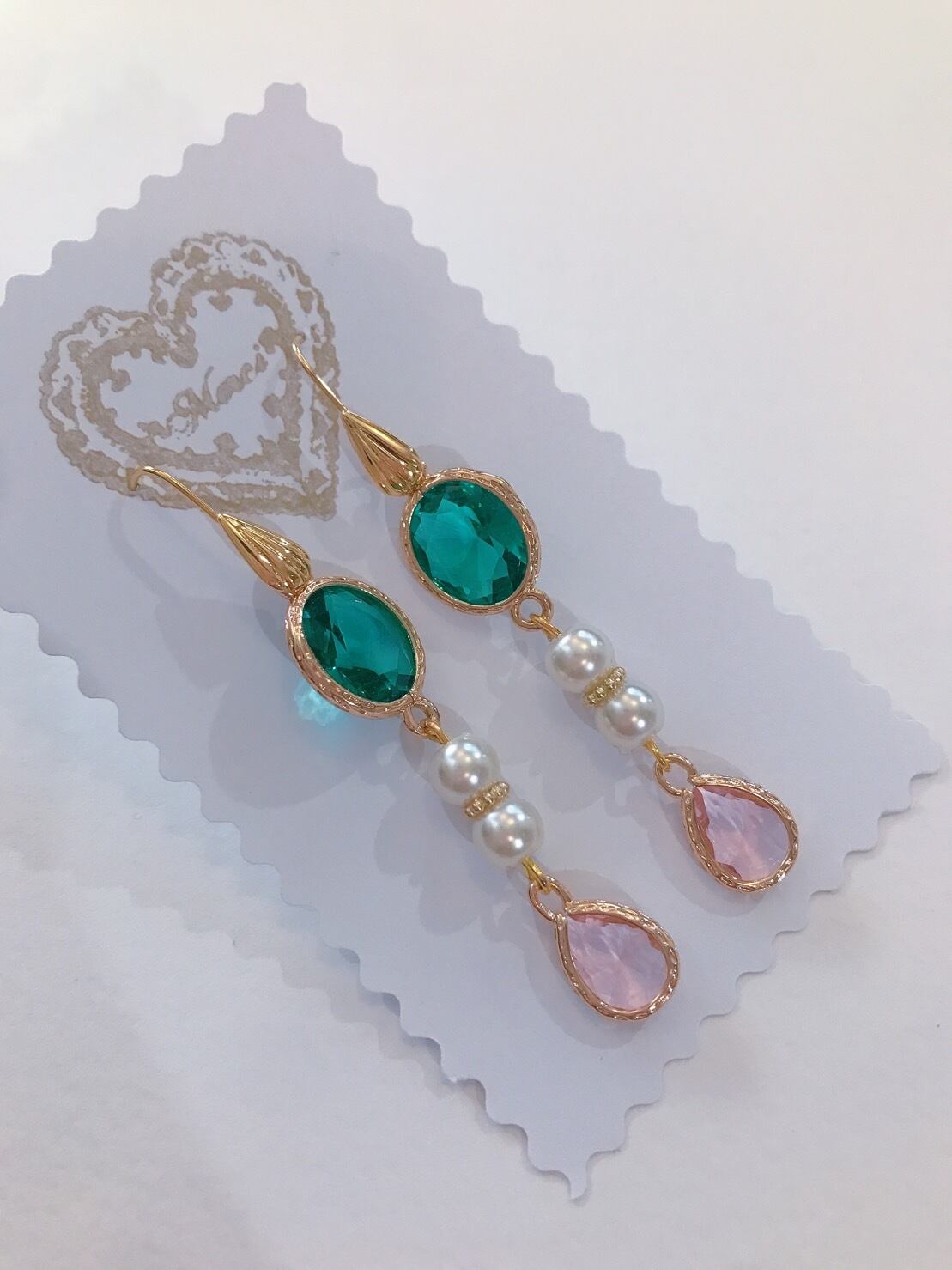 パールとガラスチャームの組み合わせが美しいプリンセスな雰囲気のピアスです。