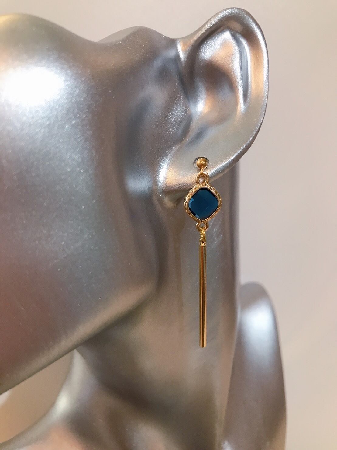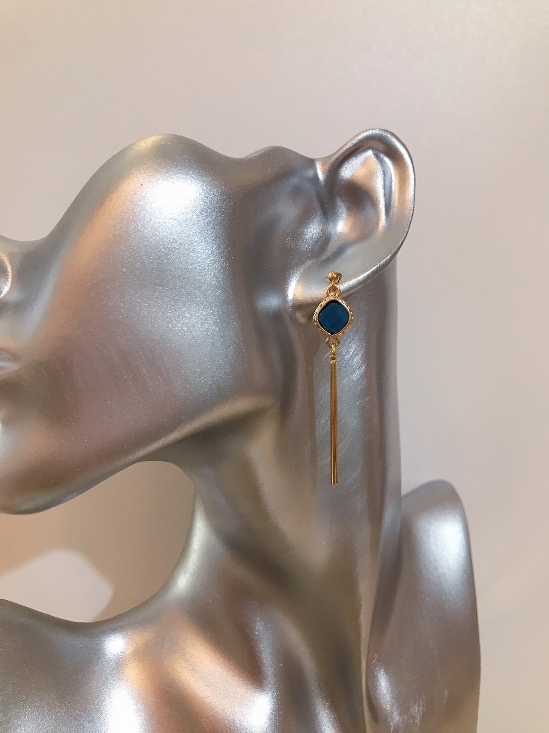 小ぶりなゴールドフレームとブルーのガラスが上品で美しいピアスです。