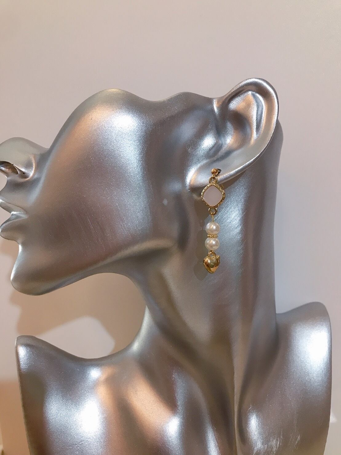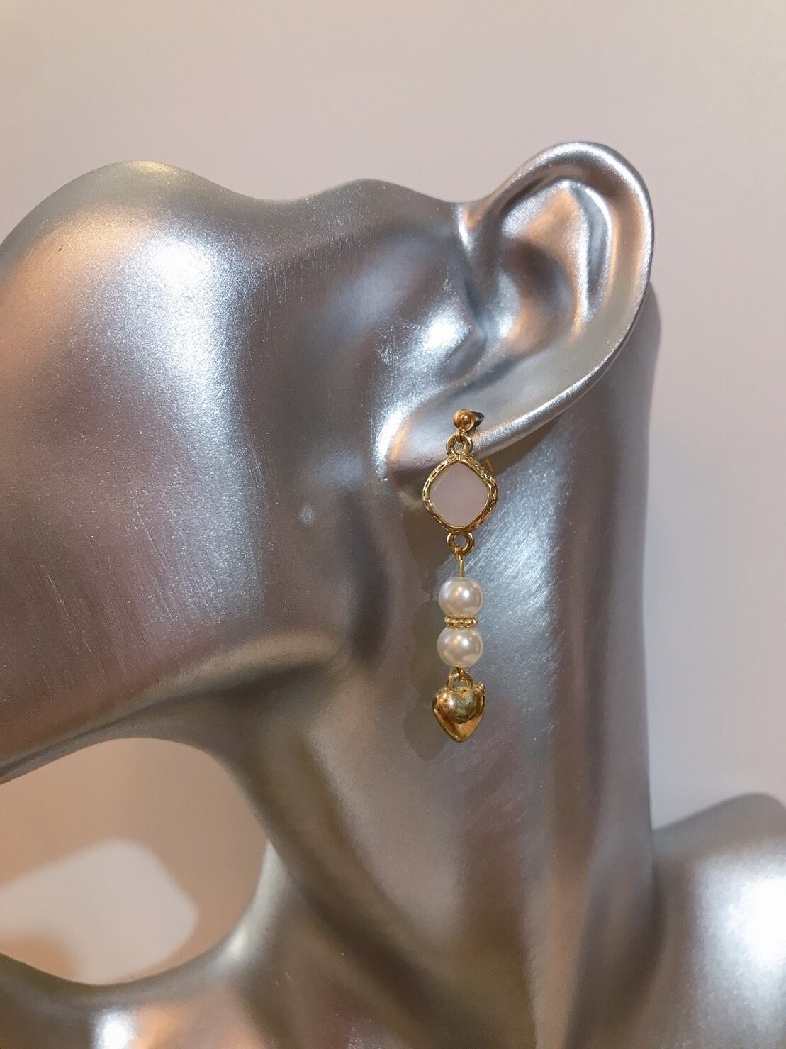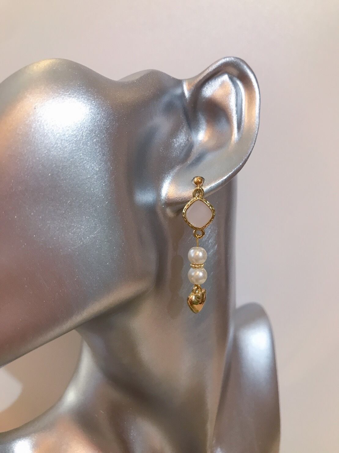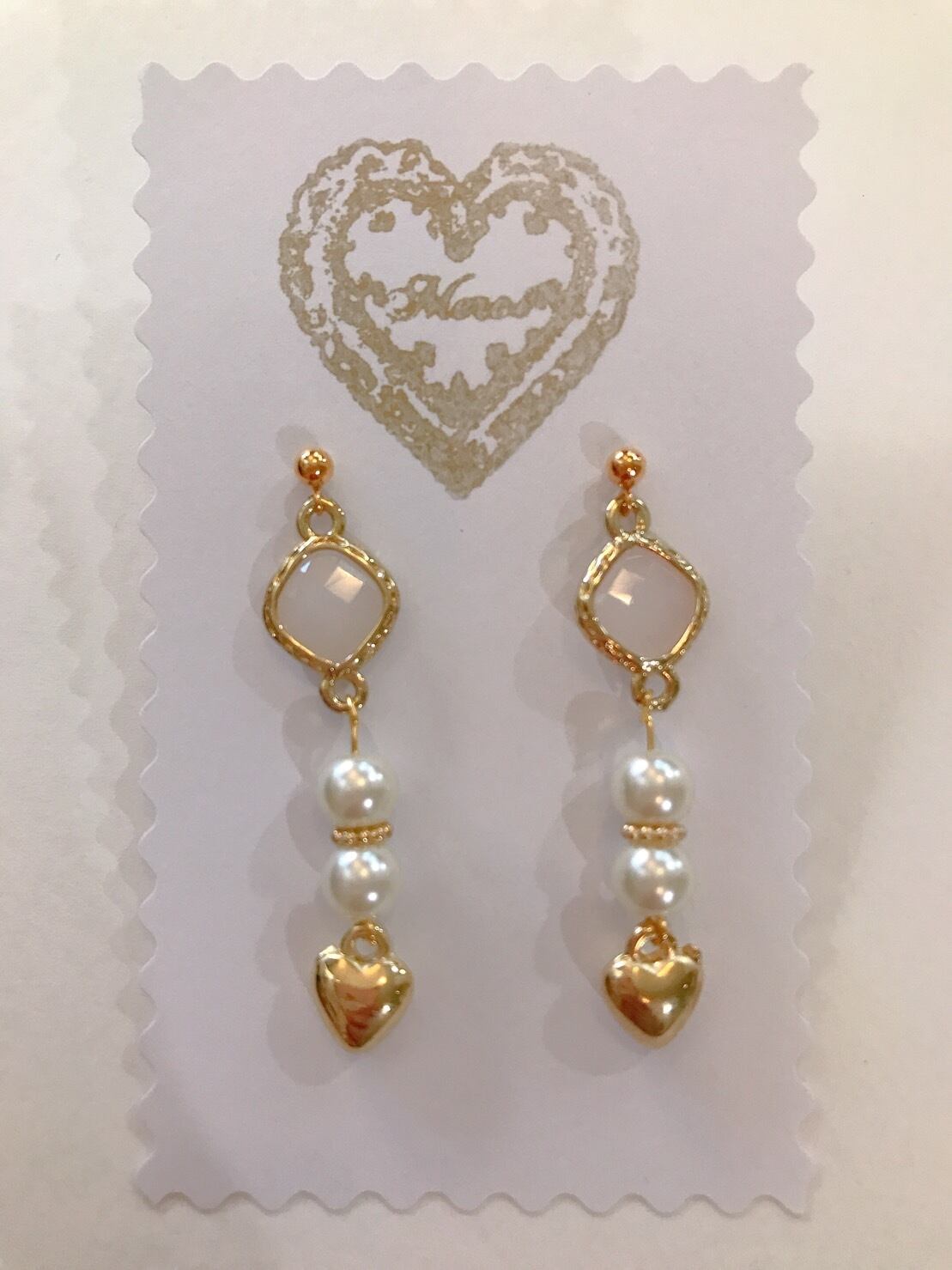 ゴールドとパールとハートの組み合わせが美しい上品なピアスです。