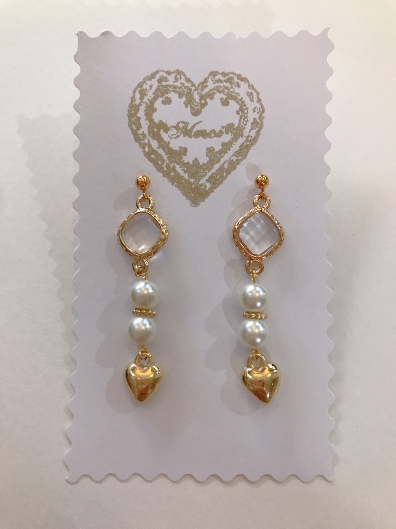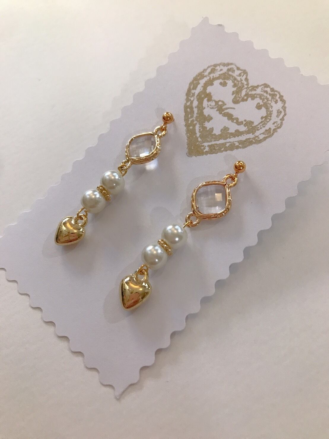 ゴールドとパールとハートの組み合わせが美しい上品なピアスです。