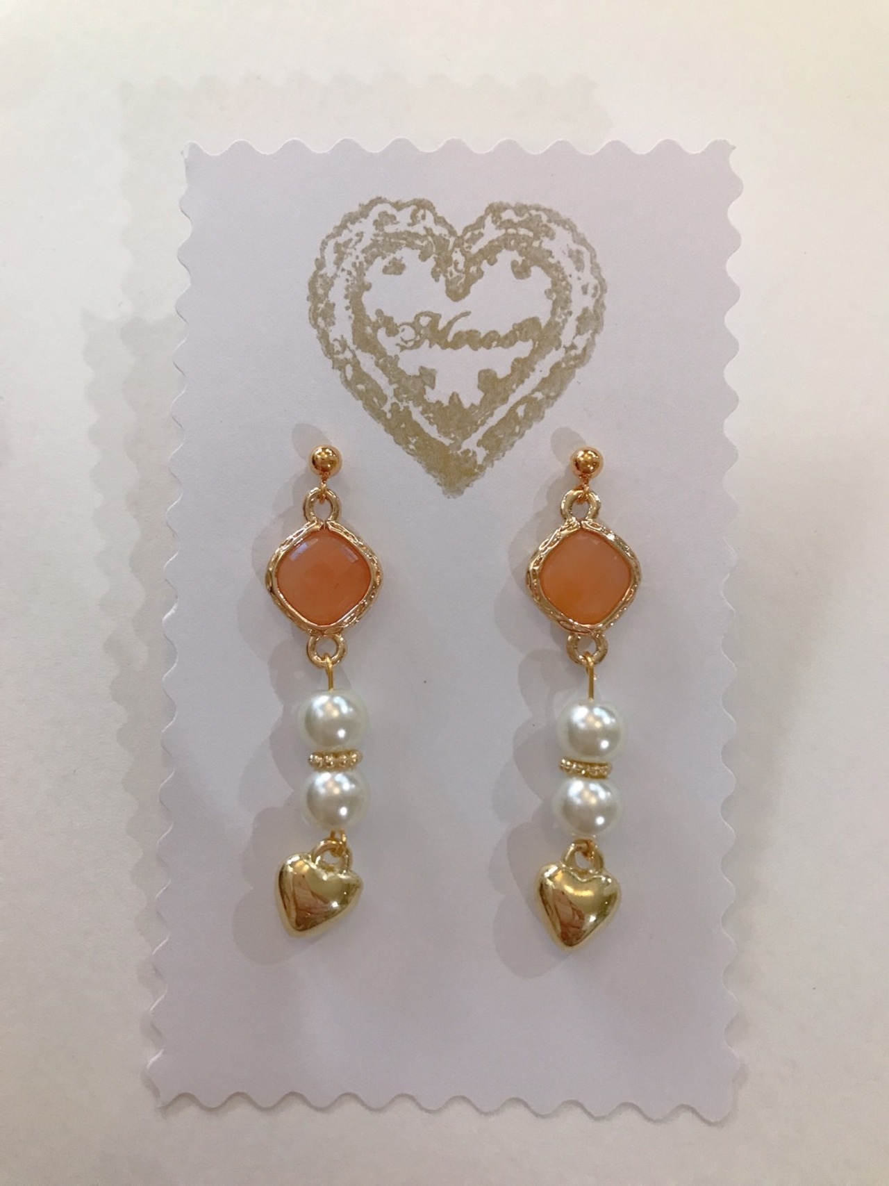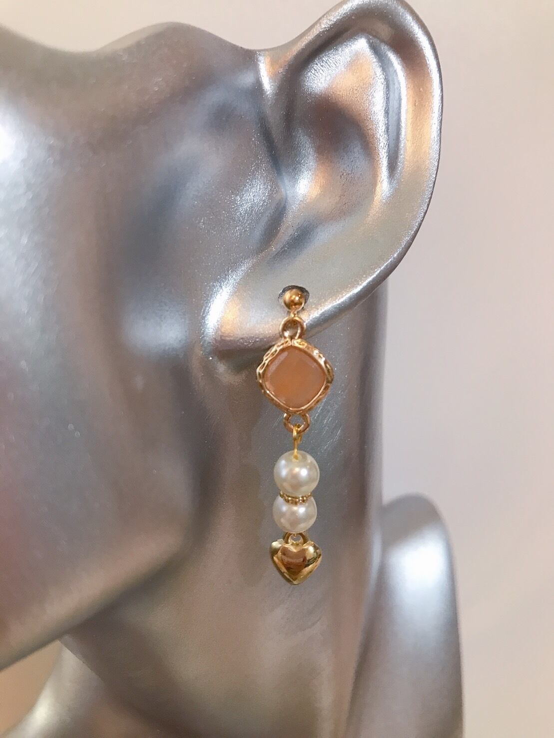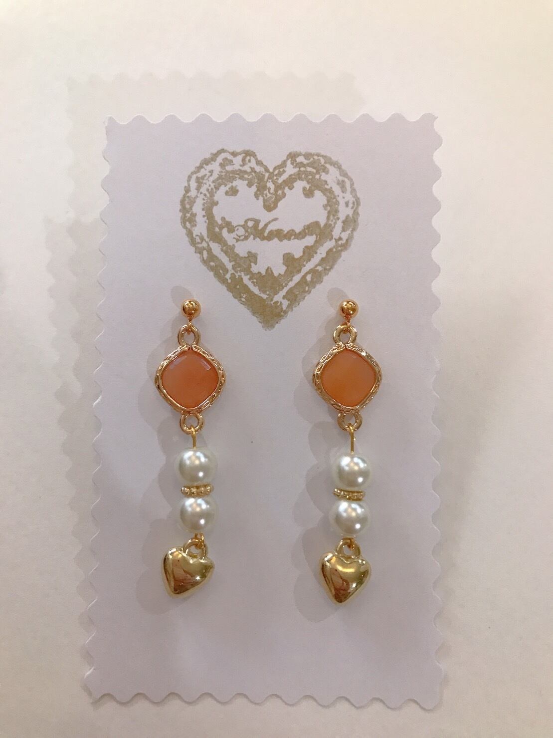 ゴールドとパールとハートの組み合わせが美しい上品なピアスです。