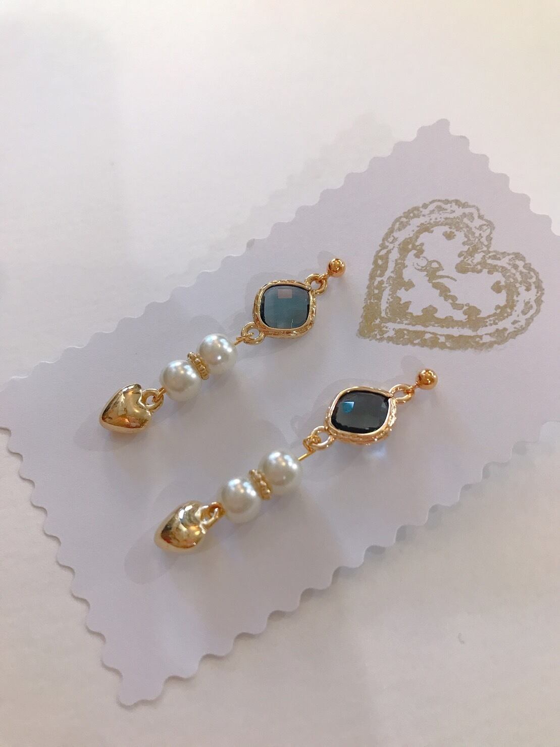 ゴールドとパールとハートの組み合わせが美しい上品なピアスです。