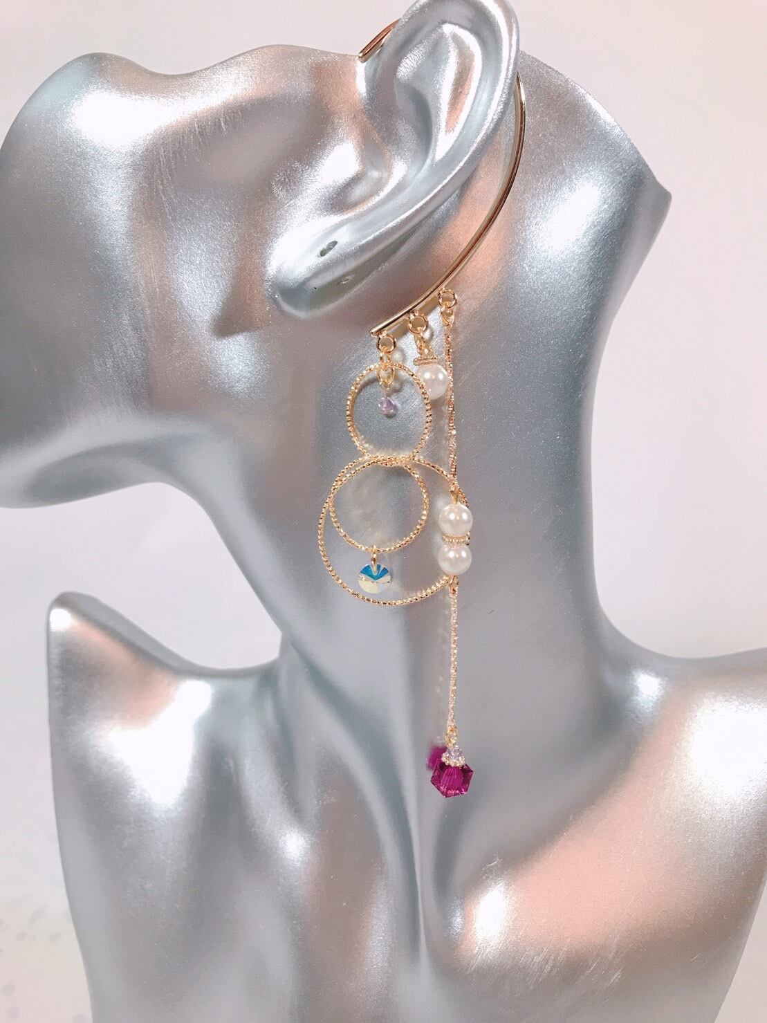 ラインストーンを使ったイヤーフックタイプのイヤリングです。