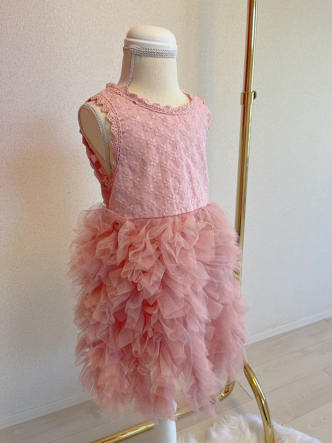 スカートのラッフルがふわふわとしていてボリュームがでるシルエットがとても可愛いです。